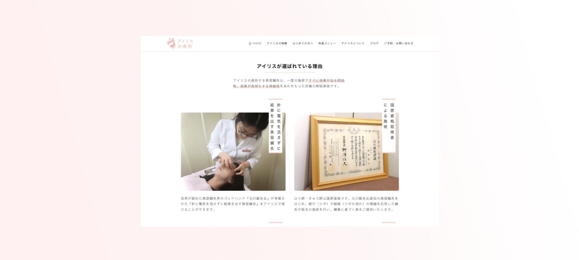 名古屋でこだわりの鍼灸治療を行なっているアイリス治療院様のWebサイトを制作しました。
