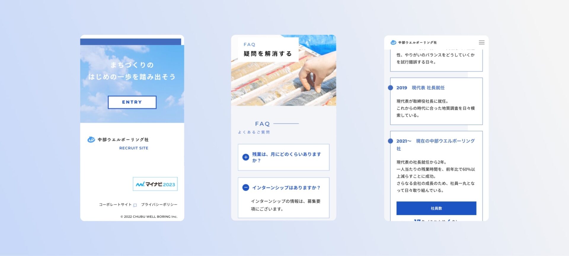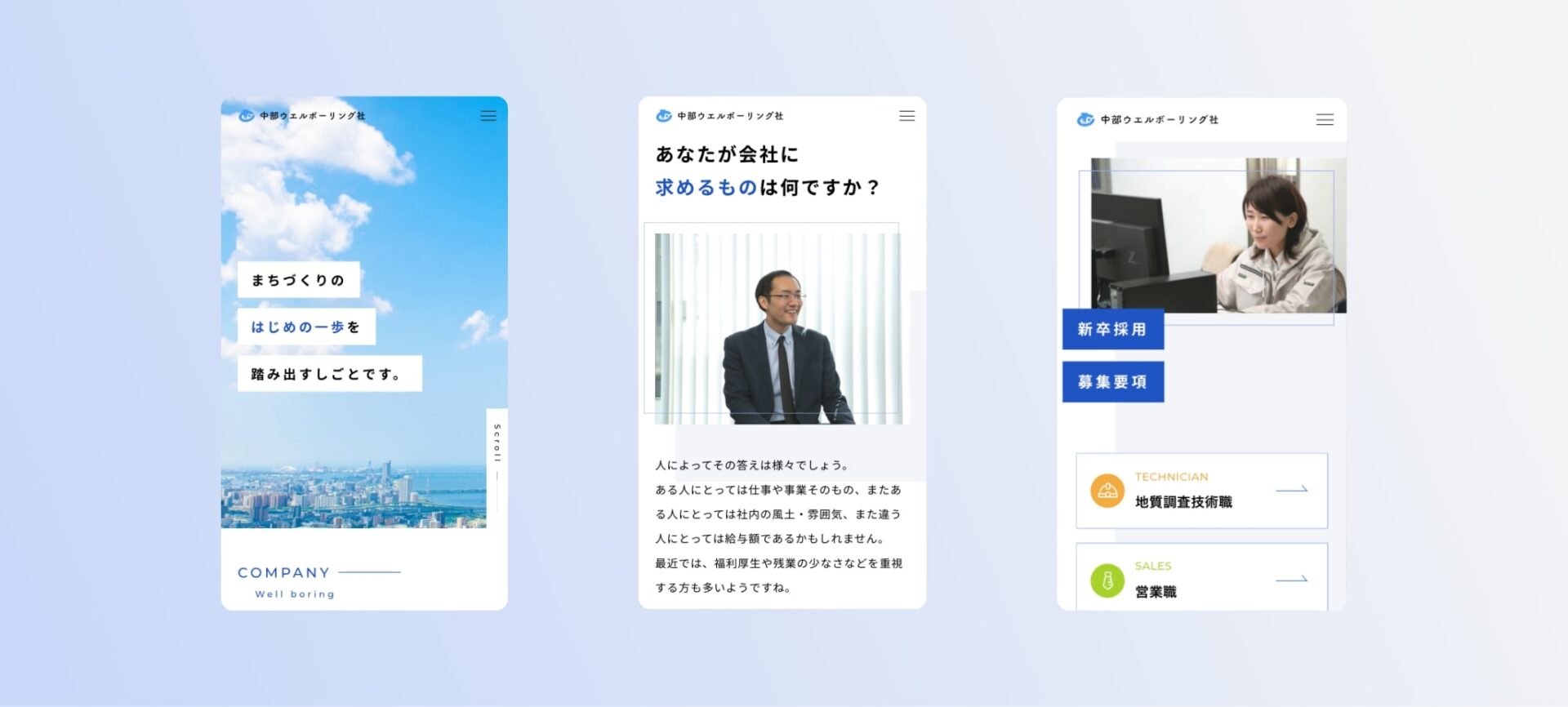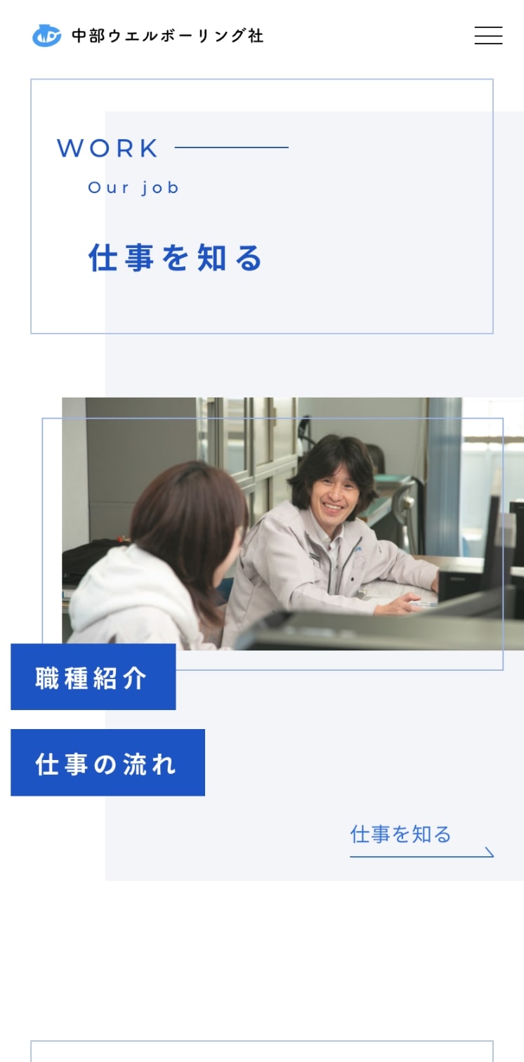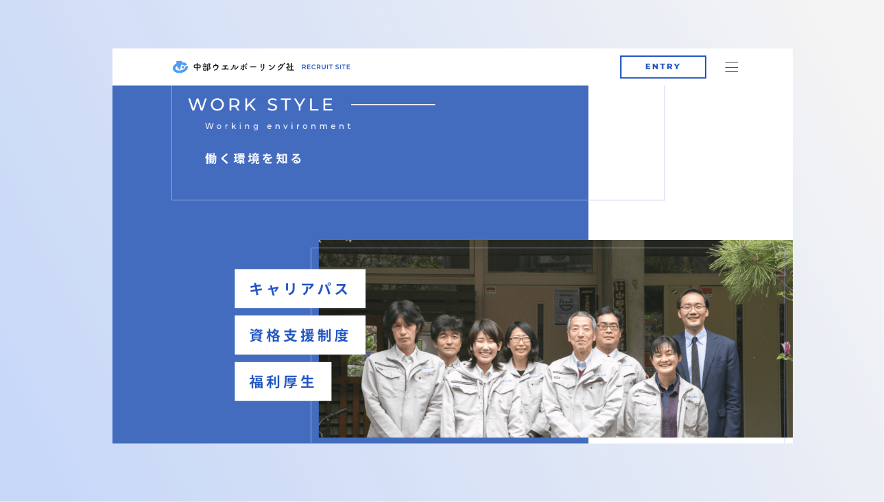 中部ウエルボーリング社様の採用サイトを作成いたしました。コーポレートサイトのリニューアルにあわせ、今回新規で作成させていただきました。