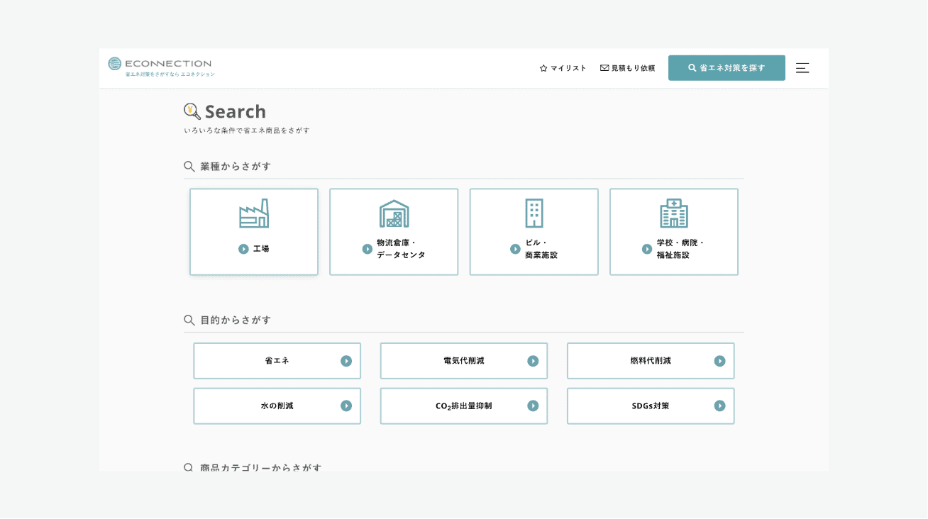 株式会社DOODLE様の製品検索サイトを制作いたしました。見積もり依頼はもちろん、フリーワード検索、絞り込みに対応。気になる商品を登録するマイリスト機能も採用しており、ユーザーにとって使いやすいサイトを目指しました。