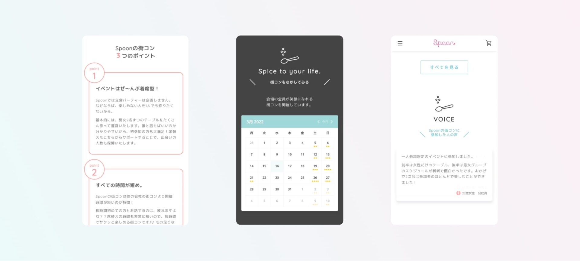 イベントSpoon様のサービスサイトを制作しました。 イベントSpoon様のWebサイトでは、直接イベントチケットの販売を行うことができるように。更に決済システムやイベント管理、在庫管理やそれを簡単に操作ができるCMSなど、シームレスな仕組みをホームページに搭載しました。ホームページ運営だけでなく、販売管理や売上管理もできる多機能なホームページとなっております。 デザインは、女性向けの優しいデザインに仕上げました。