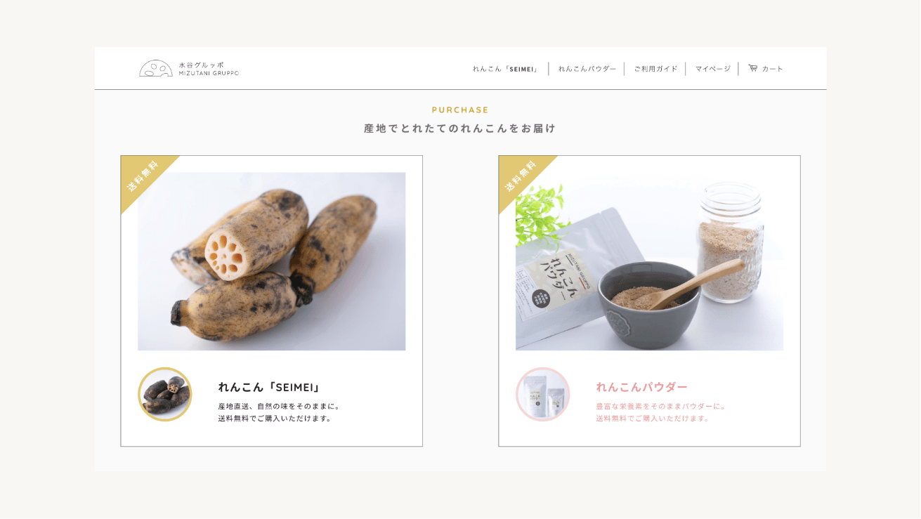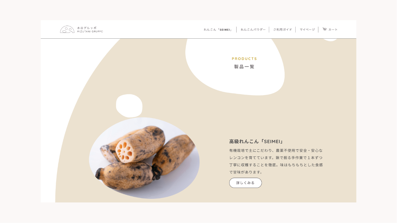 愛知県愛西市でれんこん農家を営む水谷グルッポ株式会社様のECサイト制作を担当しました。Lexaは、イメージ写真の撮影、サイト全体のデザイン、ECサイトのシステム構築など、ほぼ全ての工程をお任せいただけました。オープン開始から売り切れ状態となり、その後も予約が入る程の人気れんこんです。