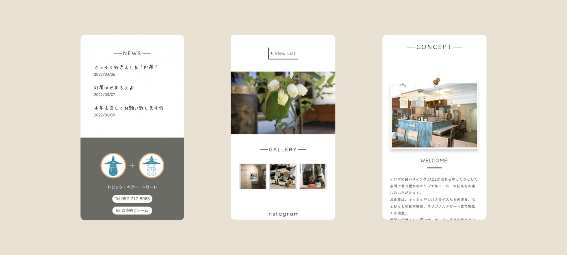 「植木鉢スイーツ」でおなじみのカフェ、トリック・オアー・トリート様のWebサイト制作を担当しました。トップの写真や一部の画像の撮影も担当しました。イメージ画像を中心に構成し、見る人の印象に残るようなWebサイトに。